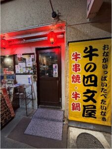 「牛の四文屋 高円寺店」へ。ここでは、ドラマにも度々出てきていたもつ焼きやコークハイをいただきました。