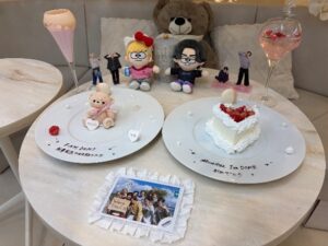 ライブ前に、表参道にあるカフェ「MOSKA by Ginger Garden」へ。推しのグッズとともにお洒落なスイーツと可愛い写真を撮りました。