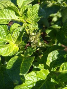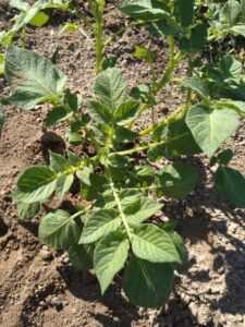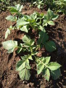 新イモが土からはみ出て太陽光に当たると緑色になり有害物質であるソラニンの含有量が増えるため、土から出ないようにしっかり土寄せをします。