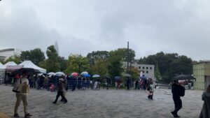 うーん。ショップテントまでかなり並んでいるじゃないですか!しかも当日は雨で、とても待てません。いったん諦め、別のテントを回っていると、お腹が空いてきたので