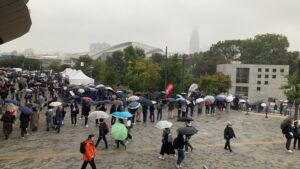 ドヒャー、先ほどの行列が並びきらずV字に反転して3倍ぐらいの列になっているじゃあーりませんか!とてもキックオフまで間に合わないと判断し別のメーカーのタオルを買いました😢