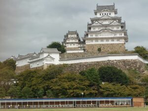 早速、レンタカーを借りて姫路城へ。大手門近くの駐車場から門をくぐるとほどなく大天守が。曇り空の中でもお城の白壁が空に映えた姿に、旅の期待が膨らみました。