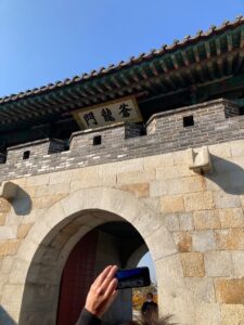 城内にある華城行宮(ファソン・ヘングン)は、王が地方巡行の際に滞在した仮の宮殿です。木造建築の温かみと整然とした空間が、儒教的な秩序と王様の思いを静かに語っているようでした。伝統武芸の再現に拍手が響き、文化の継承としての意義が胸に残ります。夕暮れ、城壁の上から眺めた赤く染まる石垣は、正祖の夢と改革の余韻が重なりました。